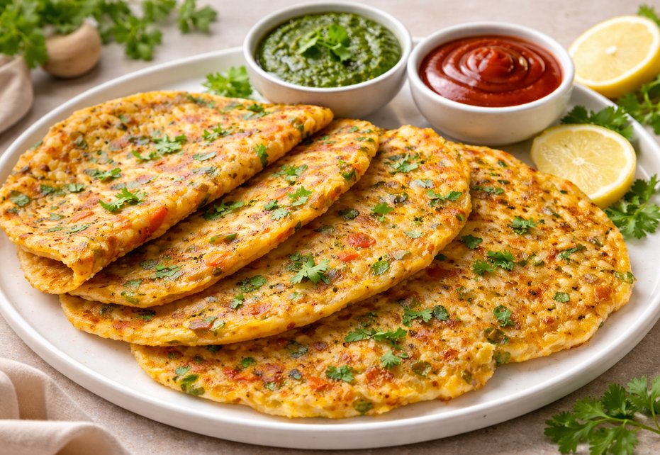 Besan Chilla with vegetables is a quick, protein-rich Indian pancake made from gram flour (besan) and fresh vegetables. This nutritious recipe is gluten-free, vegetarian, and vegan-friendly, making it perfect for breakfast, lunch, or a light dinner.